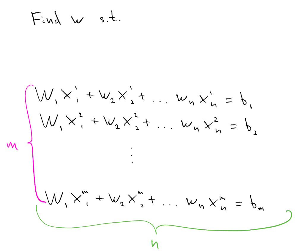 Suppose we need to find $w$ which satisfies the following $m\times n$ system of linear equations. Assume solution $w^*$ exists and is unique.