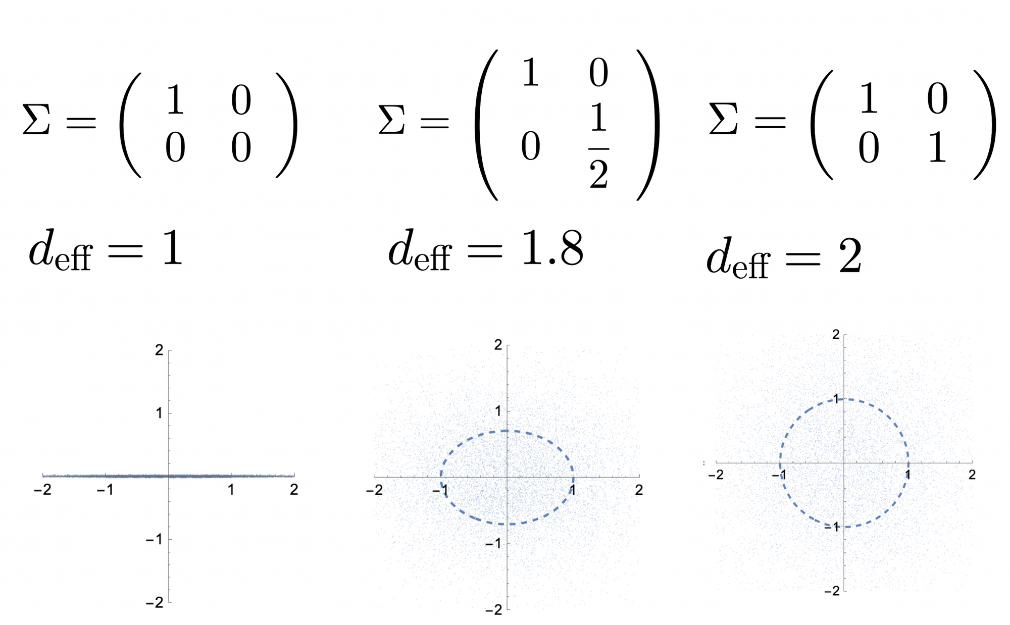 One can consider $d_\text{eff}$ as a "smoothed" way of counting dimensions of the space occupied by our observations $x$. When the space is isotropic, $d_\text{eff}=d$. When some dimensions have less mass than others, they are counted as "fractional" dimensions.