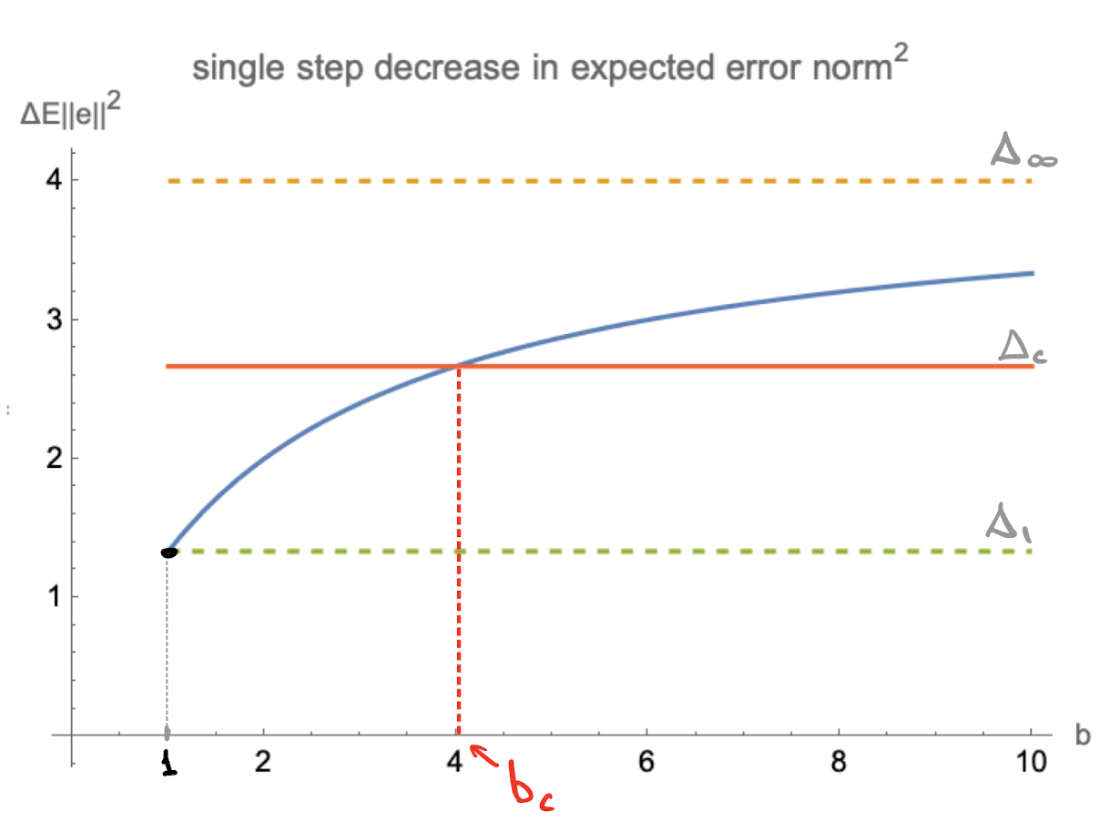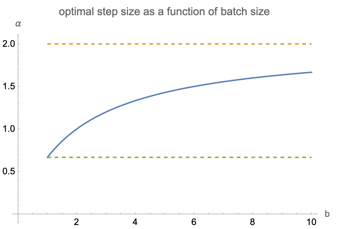 - for full batch case $b=\infty$ we get step size of $\operatorname{tr}H/\operatorname{tr}H^2$ where $H$ is the Hessian of our full-batch objective $J$